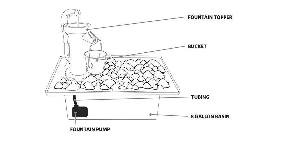 Decorate top of the basin with decorative gravel, plug in the pump, and enjoy!