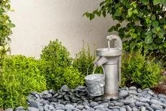 Water. To ensure continuous operation, regularly top off your water level, especially in hot weather. If your feature is close to a sprinkler, it can help keep the basin full.